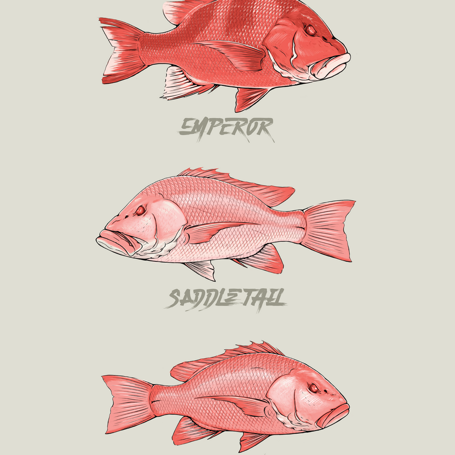 Hand drawn Red Emperor , Saddle tail snapper , Crimson snapper ( Nanygai)